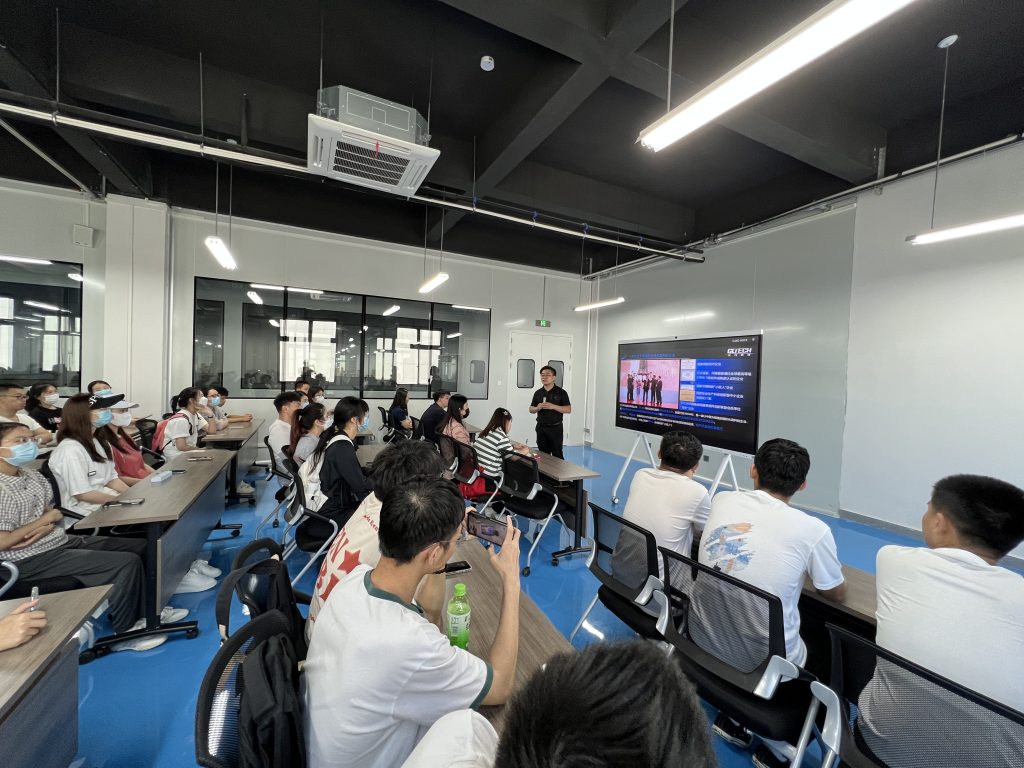 光力科技制造中心李軻主任帶領師生們先后參觀了光力科技港區(qū)新址的展廳、生產(chǎn)車間,并通過對公司經(jīng)營概況、企業(yè)文化、業(yè)務范圍和取得的成績等方面進行全面了解。