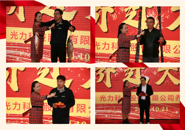 部門員工代表以獨特的表達方式在喬遷揭幕儀式上送出祝福:有代表紅紅火火的火龍果、事事如意的柿子、福澤滿司的葫蘆、節節高高出新高度的甘蔗、如魚得水魚躍龍門的大鯉魚…… 真是送出了不鳴則已一鳴驚人的驚喜。