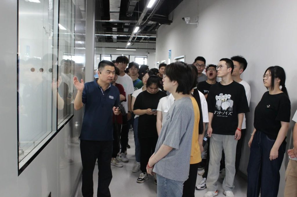隨后,制造中心半導體生產負責人楊帥邦帶領學生們來到半導體制造車間,現場觀摩生產過程、詳細為同學們講解半導體業務及產品相關設備的使用場景。