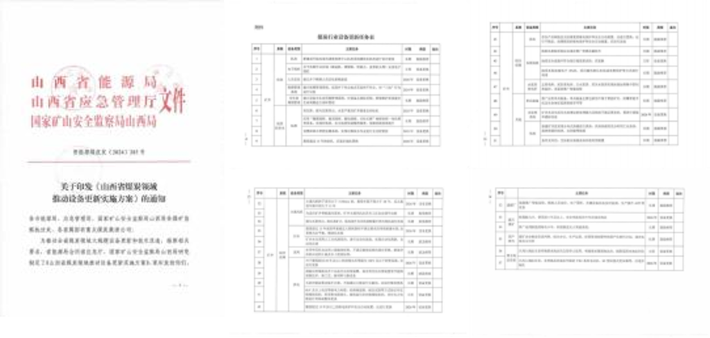 日前 , 山西省能源局會同省應(yīng)急廳、 國家礦山安全監(jiān)察局山西局研究制定了《山 西省煤炭領(lǐng)域推動設(shè)備更新實施方案》 (以下簡稱《方案》 ) , 提出依法依規(guī)淘汰 一批落后設(shè)備、 因地制宜更新一批老舊設(shè)備、 適度超前推廣一批先進(jìn)設(shè)備 , 全方位 推動煤礦及選煤廠設(shè)備向高端、 智能、 綠色、 安全方向更新改造。
